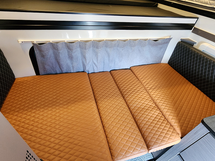 ポップアップ式のキャンパーシェルで、走行時は低いルーフのまま軽快に走行。停車時にはルーフをアップしおよそ3 倍の居住空間を確保。デシエルトシリーズとしては第二世代となるDesierto 02 は、01 の仕様から使い勝手を大幅に向上しました。