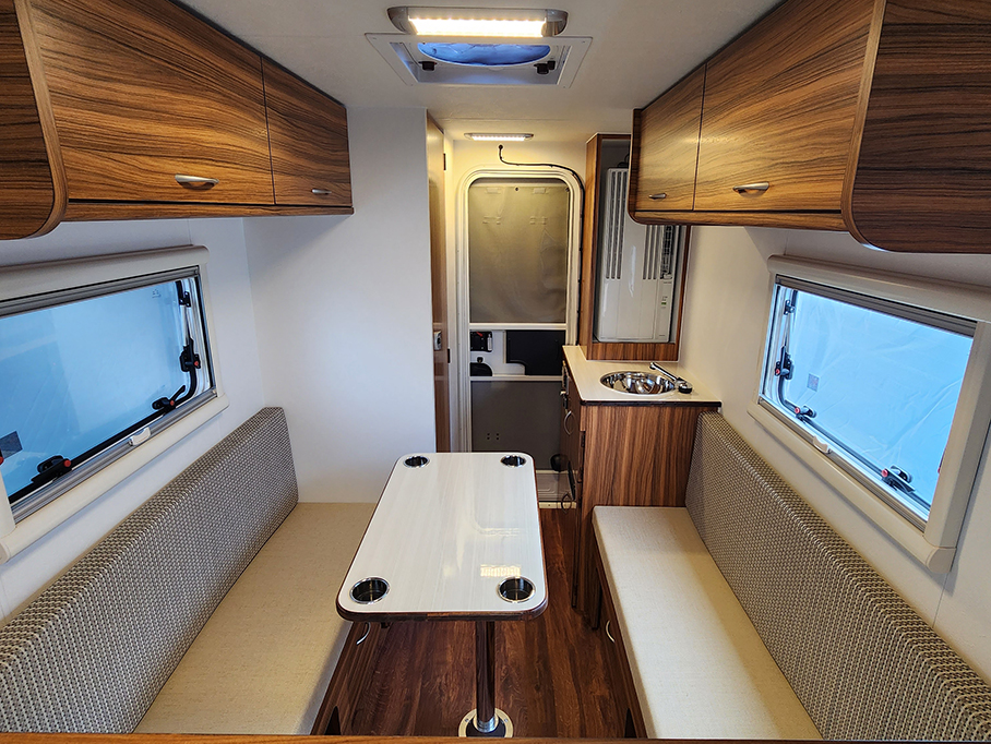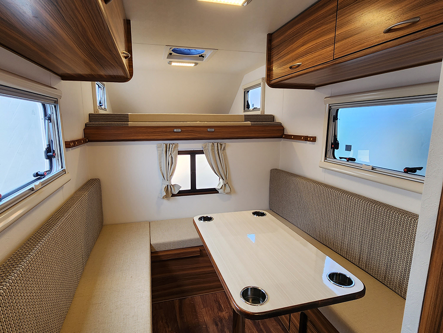 ほぼ箱型のシェルは空間的にはとても有利な形。ライトエースやボンゴトラック、キャンターなど多くの車種へ転用可能です。
