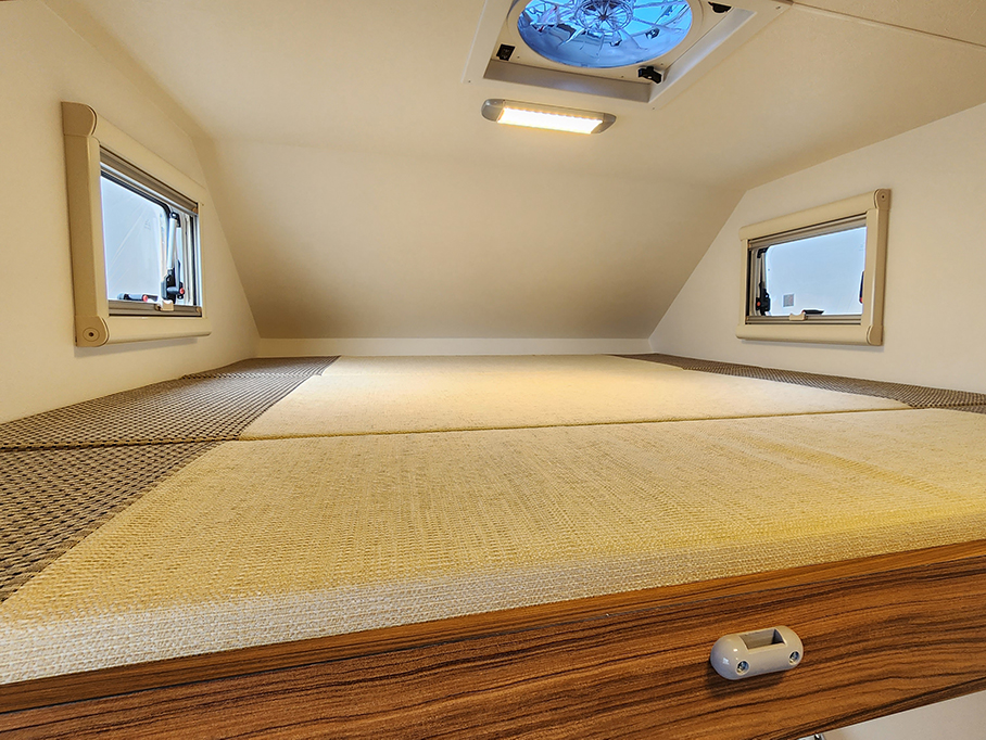キャンパーのバンクベッド下の窓とトッラックのリアウインドをつなげるパーツです。外側はビニールレザーで中にはウレタンが入っています。これを装着しますと、走行中に窓を開けたままでも雨風が入りません。また、自動車のエアコン取入れにも役立ちます。