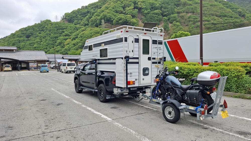 2024年には、塚本さんがバイクトレーラーの牽引体験をさせてくれて、2台のFTRでプチツーリングを楽しみました。バイクに乗ったのは、スーパーカブ90を降りてから約16年ぶり。その頃から、「バイクいいなぁ」と思い始めていましたが、わざわざ購入して乗るほどではなく、「レンタルバイクで年に数回楽しめればいいや」というスタンスでした。大きな変化が訪れたのは、2025年! 3月には、レンタルしたダックス125をハイラックスの荷台に積んで千葉でカミサンとタンデムツーリングを楽しみ、4月には、筆者のハイラックスで塚本さんのトレーラーを牽引して、FTR2台でツーリングをしました。5月には、ミスティック佐藤社長にバイクとバイクトレーラーをセットでお借りして、RVパークを拠点にビーナスラインでタンデムツーリングを満喫♪ これが本当に楽しかった!
