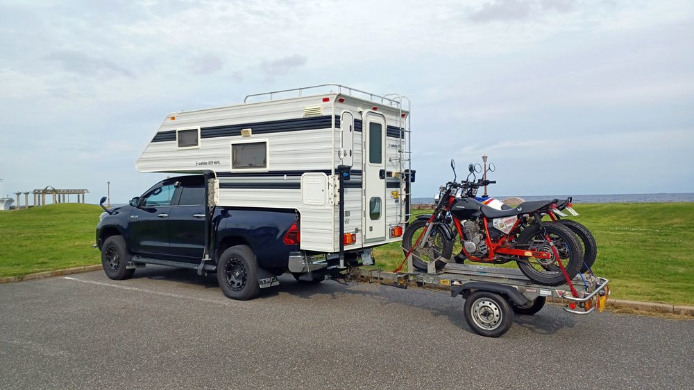 昨年8月には、普通免許すら持っていなかったカミサンが突然「バイクに乗りたい」と言い出して、小型二輪免許を取得。年末にはダックス125が納車され、新年早々ハイラックスの荷台にレブル250とダックス125を積載して、千葉でトランポツーリングを楽しんできました。バイクの購入も、カミサンのバイク免許取得も、夫婦2台のツーリングも、1年前は想像すらしていなかったこと。まさに2025年は、「人生が変わった」1年でした。そのきっかけになったのがトラキャンで、今の楽しみ方ができているのもトラキャンのおかげ。自分にとってトラキャンは、無限の可能性が詰まった最高・最強のキャンピングカーです!