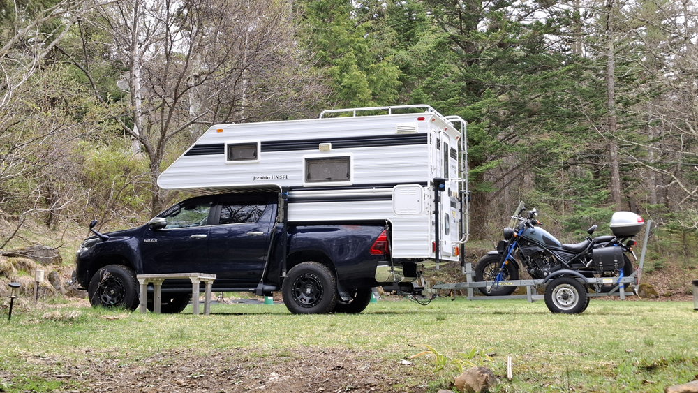 バンコン、キャブコンを乗り継ぎ、現在の愛車はスペシャル仕様のJ-CABIN HNを載せたハイラックストラキャン。