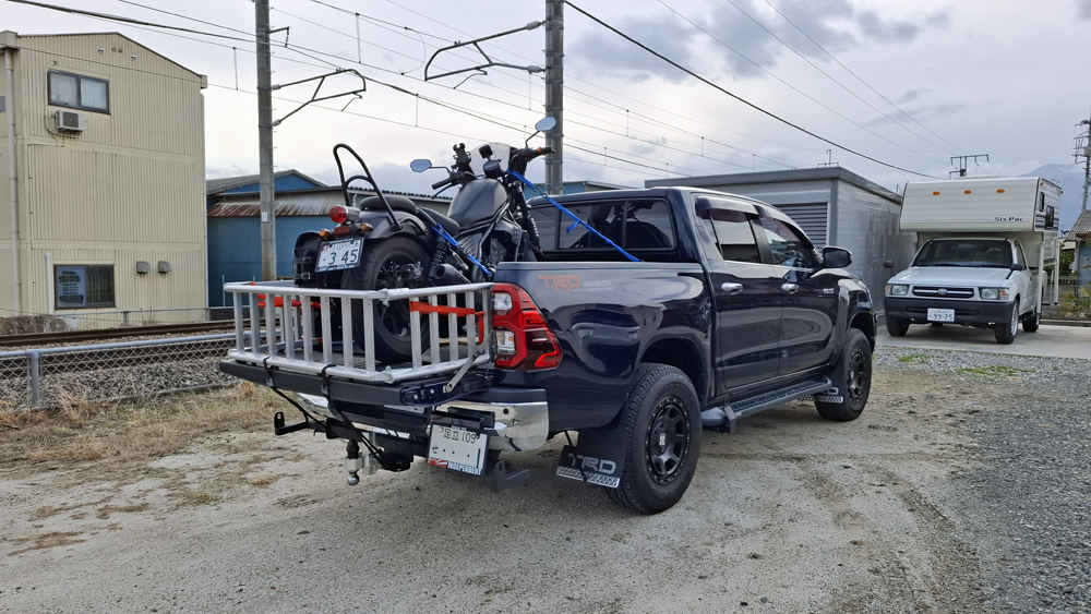 3月初旬、ネットメディア「キャンピングカースタイル」の取材でミスティック本社と双葉店にお邪魔してきました。「だったら、翌日バイクでツーリングに行こうよ」という佐藤社長の魅力的な提案に、食いつき気味で「いいですね~♪」と応えた筆者。取材前日、いそいそとハイラックスの荷台にバイクを積み込み、100%遊びに行くとしか思えないスタイルで山梨に向かいました(笑)。