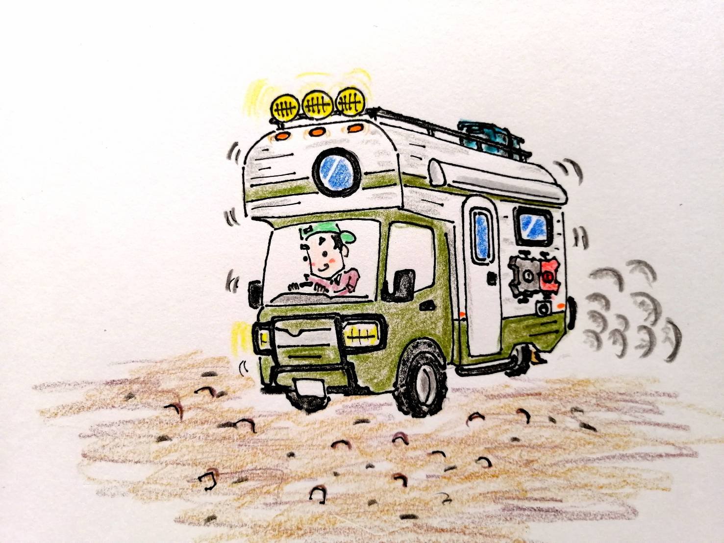 なんですか?先輩!このいたずら描きはっ!バルキーでワイルドな軽キャンじゃありませんか!カッコイイ!え~っ!これって夢?妄想?こんなのが現実化したら、欲しくなっちゃうじゃないですかっ!米国やオーストラリアで流行っているオーバーランドスタイルですか?興味深々です。軽オーバーランダーで、日本だったら林道走って林道キャンプなんて素敵だろうなあ。本当に夢?妄想?気になって眠れなくなっちゃうじゃないですか!先輩!